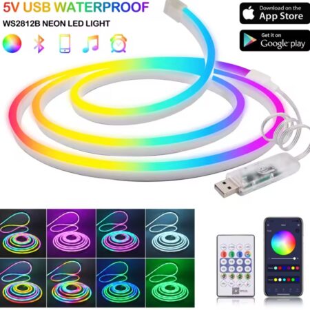 Suivez les instructions pour connecter votre appareil et commencez à mettre en œuvre vos idées avec cette corde lumineuse au néon pliable.